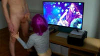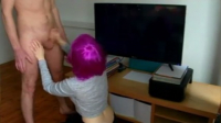 Кажется эта розововолосая девчонка нашла способ разнообразить семейную жизнь в паре. Основная сложность заключается в том, чтобы при этом подавить в себе эгоизм и чувство собственности. И речь идет вовсе не о сексе втроем. Зная, что парень обожает некоторых актрис из фильмов, она включила слайдшоу с их фотографиями на телевизоре и стала надрачивать своему молодому человеку, добиваясь эффекта, как будто ему мастурбируют звезды с экрана, а не она. Дойдя до момента, когда парень уже был близок к кульминации, она взяла член в рот и завершила начатое.