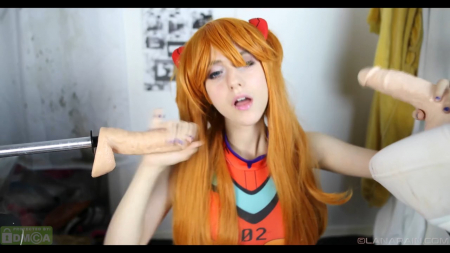 Молодая рыжая куколка решила усовершенствовать свои навыки в оральном сексе. Симпатяга установила два резиновых члена на уровне рта и принялась то нежно то страстно сосать игрушки.
