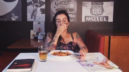 В век всяких челленджей и соревнований было бы странно до сих пор не увидеть вот это. Суть проста - девушка приглашается в ресторан или уютное кафе, и ее снимают на камеру, как она ест. Нюанс заключается в том, что в ее киске находится мощный вибратор, который всячески мешает леди сосредоточиться на мыслях, вызывая какие-то странные и особо мощные оргазмы. Эта брюнетка не стала исключением, ведь вибратор не только помешал ей насладиться лапшой "удон", так она еще и чуть бокал с напитком не пролила на колени, настолько ее трясло от счастья.