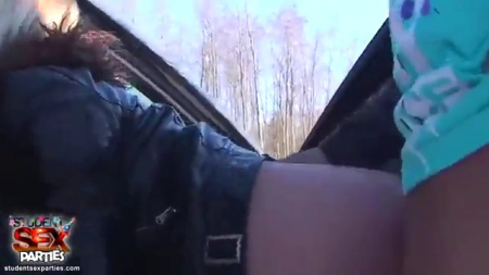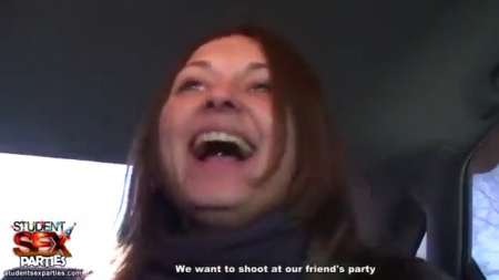 Парень со своей девушкой едет на вечеринку к друзьям в загородный коттедж. По дороге парень останавливается и берет двух попутчиц - симпатичную блондинку Вику и рыжую бестию Алису. Когда же пара подвезла попутчиц до места назначения, Вика решает отблагодарить парня. Она начинает сосать член а потом дает выебать себя в вагину. Все это время девушка парня снимает все происходящее на камеру.