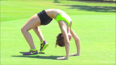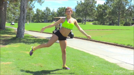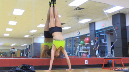 Молодая эксгибиционистка во время тренировки так и норовит снять с себя одежду, оголить попку или опрятные сисечки. Все это время за спиной девушки кто-то ходит, но ее это не смущает. После она меняет локацию на спортивный зал, где занимается гимнастикой и катается на велосипеде с голыми сиськами. Все это время глазеют мужики, у которых бегут слюни от симпатичной телочки и ее возбуждающих форм, которыми она специально крутит перед ними.